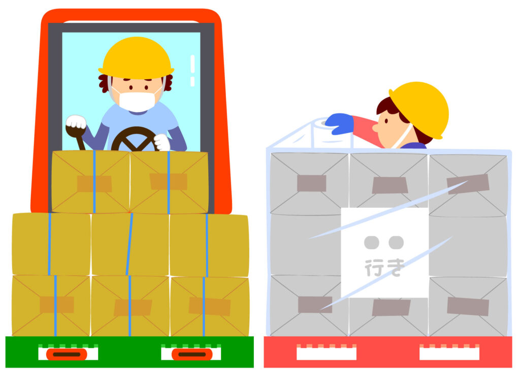 パレットに乗っている場合もありますがフォークマンと呼ばれる人がいるので動かして貰ったりハンドリフトと言う物を使って自分でも動かす事が出来ます。