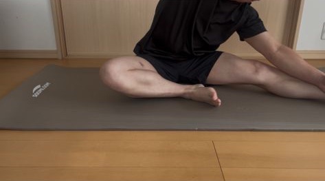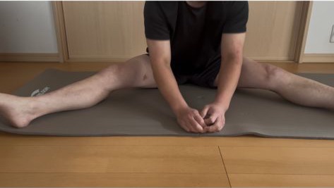 最後に両足を広げた状態で前に倒れる様に両足の裏を伸ばします。